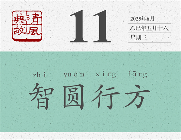 “智圓行方”說的是思與行的關(guān)系問題。通俗地說,就是腦子要靈活,手腳要規(guī)矩。明人張居正《襄毅楊公墓志銘》:“維公之德,智圓行方,忠不近名,言不泥常。”思與行,看起來各自獨立,實際上密不可分。任何事情,都得想好了再做。怎樣才能想好呢?那就得把自己能想到的各種可能都拿出來分析分析、比較比較;如果還覺得不夠,那就得跟別人交流,跟別人溝通。同樣,做任何事情,都得一以貫之。只要認(rèn)準(zhǔn)了、認(rèn)定了,就要堅持做下去,不能今天這樣明天那樣,今天聽你的明天聽他的;也不能搖搖擺擺,走走停停。久久為功,勝利才會向你招手。