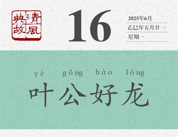 西漢劉向《新序·雜事》有一則寓言:“葉公子高好龍,鉤以寫(xiě)龍,鑿(通‘爵’,酒具)以寫(xiě)龍,屋室雕文以寫(xiě)龍。于是夫龍聞而下之,窺頭于牖,施(yì,延伸)尾于堂。 葉公見(jiàn)之,棄而還走,失其魂魄,五色無(wú)主。是葉公非好龍也,好夫似龍而非龍者也。”