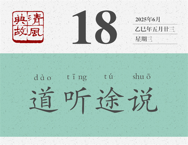 道,道路也;涂,通“途”,亦道路也。從道路上聽來,又在道路上傳播,說明既沒有經(jīng)過考證,也沒有動過腦子。從路人那里聽來的東西,不查證、不思考,又說給了另外的路人,然后一而再、再而三,結(jié)果就會“三人成虎”。如果再繼續(xù)下去,百而千,千而萬,后果就是“一人傳虛,萬人傳實”。此《四書辨疑》所謂“聽人所傳,傳己所聽,皆不可不謹(jǐn)也”。