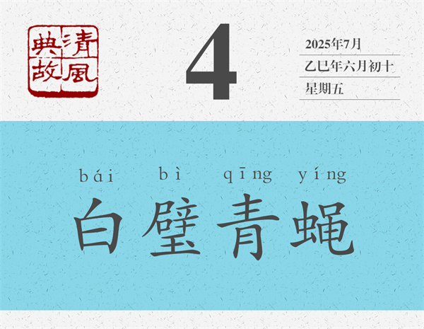 一顆老鼠屎,壞了一鍋湯。同樣,一點蒼蠅屎,也能使素練、白璧受到不可挽回的玷污。任何時候,都有好進讒言的人,今天說這個人的壞話,明天說那個人的壞話,忙得不亦樂乎,其蠅營狗茍、猥猥瑣瑣之行徑,讓人生厭,也讓人切齒。李白曾在《雪讒詩贈友人》詩中質(zhì)問:“白璧何辜,青蠅屢前?”質(zhì)問不是終點,更應(yīng)當讓他們茍且行為大白于世,讓損害別人名聲、敗壞社會風(fēng)氣者,無地自容,無所遁形。