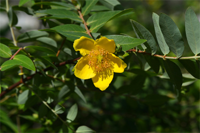 簡(jiǎn)介:金絲桃,半灌木?;ㄆ?-8月,果期9-11月?;利?,供觀賞。果實(shí)及根供藥用,果可作連翹代用品,根能祛風(fēng)、止咳、下乳、調(diào)經(jīng)補(bǔ)血,也可治跌打損傷。