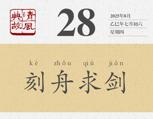 東西遺失了,沒(méi)有找回來(lái),雖然很遺憾,但并沒(méi)有人覺(jué)得可笑。楚人劍掉到了江里,同樣沒(méi)有找到劍,但為什么我們不覺(jué)得遺憾,反而覺(jué)得可笑呢?那個(gè)人的劍掉到江里了,那個(gè)人的腦子是不是也掉到江里了呢?后人即以“刻舟求劍”為典,比喻墨守成規(guī),不知變通,處理事情的方法、解決問(wèn)題的辦法不能隨著形勢(shì)的變化而變化,不能隨著事物的發(fā)展而發(fā)展。也用來(lái)形容事過(guò)境遷,追悔莫及。南宋高僧宗杲《頌古》其四十曰:“出門(mén)握手話分?jǐn)y,古路迢迢去莫追。卻笑波心遺劍者,區(qū)區(qū)空記刻舟時(shí)。”黃庭堅(jiān)詩(shī)《追憶余泊舟西江事次韻》:“老大無(wú)機(jī)如漢陰,白鳥(niǎo)不去相知深。往事刻舟求墜劍,懷人揮淚著亡簪。”其中的“空記刻舟時(shí)”“刻舟求墜劍”,都是對(duì)“刻舟求劍”的化用。