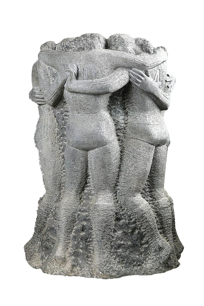 另一件《雄冠》為花崗巖材質(zhì)雕塑作品,是何鄂先生于20世紀(jì)80年代創(chuàng)作的精品,表現(xiàn)了中國女排榮獲三連冠時隊員們緊緊地?fù)肀г谝黄鸬臍v史時刻,充分展示了“祖國至上、團(tuán)結(jié)協(xié)作、頑強拼搏、永不言敗”的女排精神,生動詮釋了奧林匹克精神,展現(xiàn)可信可愛可敬的當(dāng)代中國形象,向世界講述了中國體育發(fā)展的故事,以藝術(shù)精品譜寫出團(tuán)結(jié)就是勝利的鏗鏘華章。