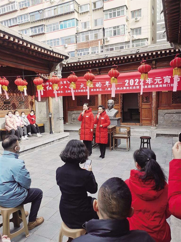 2月14日,在喜迎元宵佳節(jié)之際,由蘭州市文化和旅游局主辦的“火紅的八辦火紅的年 民族團(tuán)結(jié)一家親”——2022年元宵節(jié)主題活動(dòng)在位于酒泉路的八路軍蘭州辦事處紀(jì)念館舉行。來自酒泉路街道南稍門社區(qū)、南關(guān)民族風(fēng)味一條街的市民代表與蘭州八辦工作人員及紅色小志愿者近百余人齊聚一堂,共同“憶黨史、話冬奧、猜燈謎、慶元宵、唱紅歌”。