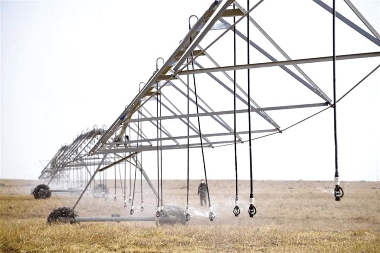在農(nóng)投集團現(xiàn)代牧草休閑示范園項目,平整一新的2.3萬畝土地上,3組大型噴灌設備已經(jīng)投入緊張的工作中,隨著工作人員啟動設備,噴灌機所過之處土地一片濕潤,空氣中充滿了泥土的清新。據(jù)現(xiàn)場負責人介紹,連續(xù)幾日,他們都在緊鑼密鼓開展春灌工作,利用大型噴灌設備,不僅實現(xiàn)了水資源的高效利用,而且減少了人力投入,工作效率更高。