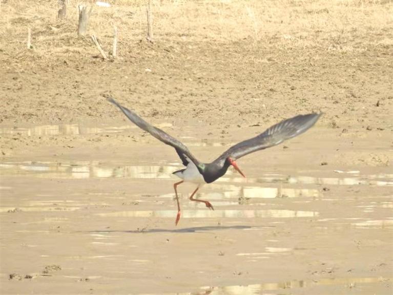黑鸛是國家一級重點(diǎn)保護(hù)野生鳥類,喜在河流、沼澤、濕地中覓食魚、蛙、昆蟲等,繁殖于崖壁或高樹上。黑鸛在我國分布于東北、西北、華北等大部分地區(qū),分布較廣,但種群數(shù)量較少。黑鸛對覓食水域,環(huán)境安全性要求極高,水質(zhì)清澈,水體食物豐富,對棲息環(huán)境十分“挑剔”。黑鸛現(xiàn)身該區(qū)域,從一個(gè)側(cè)面印證了該區(qū)域水質(zhì)向好。據(jù)介紹,連年來,連城保護(hù)區(qū)開展生態(tài)治理修復(fù)工程,生態(tài)環(huán)境明顯改善,該局加強(qiáng)水域內(nèi)生物多樣性保護(hù)工作力度,引來大天鵝、黑鸛、大白鷺、普通秋沙鴨、赤麻鴨、綠頭鴨等水鳥來此棲息停歇,成為美麗風(fēng)景線。