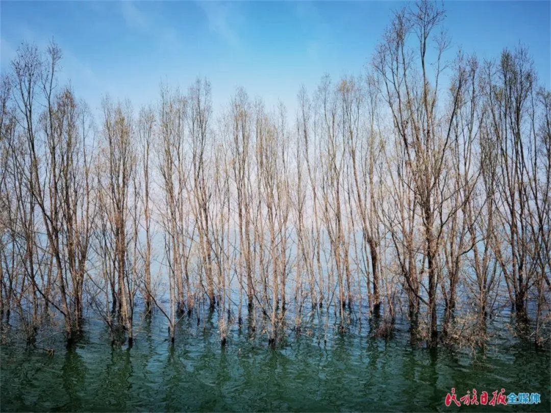 在岸邊,可以看到10公里的柳樹“站”在水中,根連著根,枝連著枝。這些高大的柳樹,不僅減緩了水面上襲來(lái)的風(fēng)浪,形成第一道保護(hù)“堤壩”,還成為一道亮麗的風(fēng)景線——倒映在湖面上的樹木婀娜多姿,鳥兒在樹杈上筑巢棲息,魚兒在樹下游玩,好一幅綿長(zhǎng)的水鄉(xiāng)畫卷。