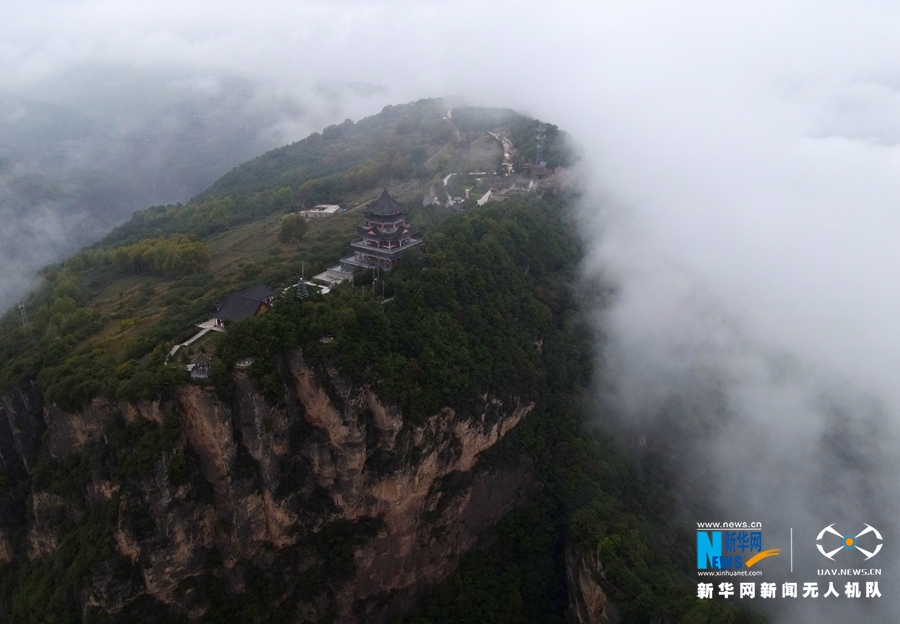 9月18日,崆峒山出現(xiàn)云海景觀。新華網(wǎng)發(fā)(吳希會攝)