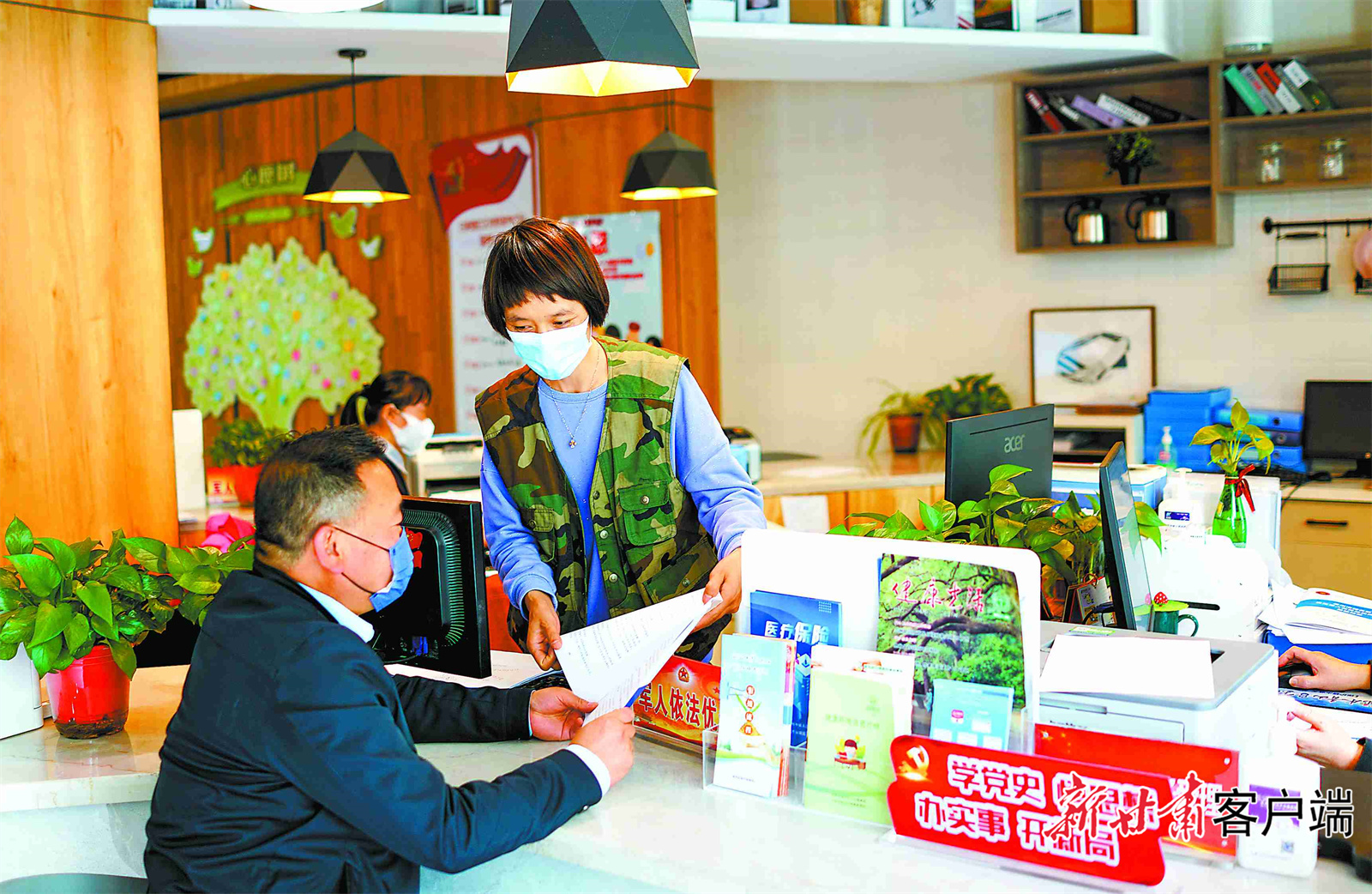 蘭州市城關區(qū)白銀路街道甘家巷社區(qū)全科受理臺上,社區(qū)工作人員熱情解答辦事群眾提出的問題。