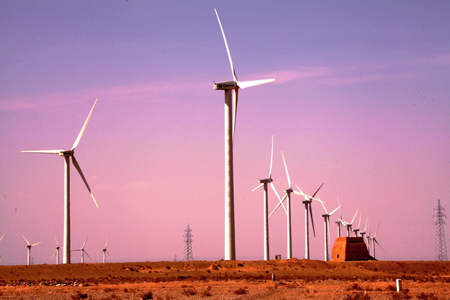 位于甘肅省酒泉市瓜州縣的風電場正源源不斷地向各地輸送清潔能源。韓甜甜攝