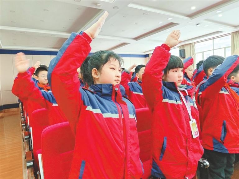 龔家灣第三小學(xué),孩子們展示裝有新學(xué)期目標(biāo)的福袋。