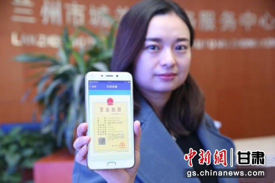 圖為蘭州一家公司代表展示申領的電子營業(yè)執(zhí)照。(資料圖) 史靜靜 攝