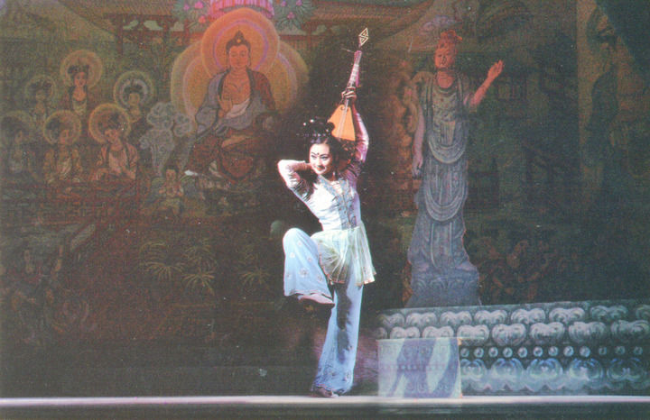 1980年,高金榮編纂了《敦煌舞教學(xué)大綱》,并于當(dāng)年招收了第一屆敦煌舞班學(xué)生。教學(xué)實(shí)踐中,她開(kāi)創(chuàng)了包括呼吸、手姿、手臂、單腳形態(tài)和琵琶道具組合在內(nèi)的舞姿訓(xùn)練課,編導(dǎo)了《敦煌夢(mèng)幻》《極樂(lè)敦煌》等組舞以及教學(xué)劇目《千手觀音》《妙音反彈》《大飛天》《歡騰伎樂(lè)》《莫高女神》等,再一次“活化”了敦煌壁畫(huà),形成了完備的敦煌舞教學(xué)體系。