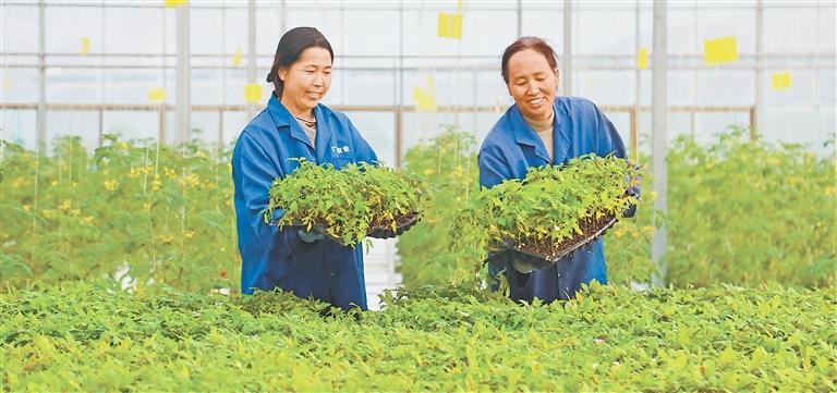 隴南市武都區(qū)石門鎮(zhèn)青隴現(xiàn)代農(nóng)業(yè)產(chǎn)業(yè)園里,產(chǎn)業(yè)工人忙著搬運(yùn)西紅柿育苗盤