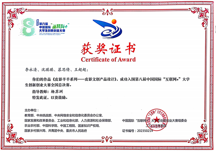 中國甘肅網(wǎng)7月12日訊(西北角·中國甘肅網(wǎng)記者 余守萱 通訊員 郭海霞)近日,從中國國際“互聯(lián)網(wǎng)+”大學生創(chuàng)新創(chuàng)業(yè)大賽組委會傳出喜訊,由環(huán)縣第二中學楊蘇洲老師指導(dǎo),學生李永清、沈琪琪、慕思倩、王超超四人共同創(chuàng)作完成的作品《皮影羊羊系列——皮影文創(chuàng)產(chǎn)品設(shè)計》,成功入圍第八屆中國國際“互聯(lián)網(wǎng)+”大學生創(chuàng)新創(chuàng)業(yè)大賽全國總決賽。