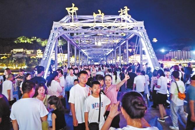 入夏以來(lái),全國(guó)各地?zé)崂艘u人,但絲路重鎮(zhèn)蘭州以23-26℃的平均氣溫成為各地游客消夏避暑勝地,外來(lái)游客涌入金城,尤其是暑假期間呈現(xiàn)出井噴式增長(zhǎng)。依托中山橋、白塔山、黃河母親、黃河樓等重要旅游景點(diǎn)資源,黃河之濱成為外來(lái)游客打卡首選,“夜游黃河”“黃河頌·大有蘭州”光影秀火爆出圈,沿河茶攤、休閑茶吧、露營(yíng)基地更是出現(xiàn)“一桌難求”的現(xiàn)象。