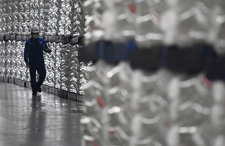 蘭州石化公司工作人員在庫房?jī)?nèi)查看產(chǎn)品。新華社記者 陳斌 攝