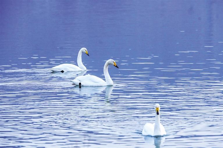 “生態(tài)好不好,鳥兒是晴雨表。”近日,西固區(qū)達(dá)川鎮(zhèn)三河口迎來了今年首批越冬大天鵝,吸引了眾多市民游客前往觀賞。記者從蘭州市林業(yè)局了解到,目前黃河蘭州段濕地分布和棲息的濕地鳥類約有68種,其中,國家I級重點(diǎn)保護(hù)鳥類3種(黑嘴鷗、黑鸛、白尾海雕),國家II級保護(hù)鳥類5種(大天鵝、鴛鴦、鹮嘴鷸、白腰杓鷸、鶚)。鵲鴨、綠頭鴨、斑嘴鴨、普通秋沙鴨和漁鷗等優(yōu)勢越冬水鳥種群數(shù)量較大,主要棲息地分布在沿線各灘涂地,棲息地質(zhì)量較高。