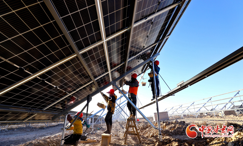 1月16日,張掖市山丹縣東樂北灘新能源基地上,光伏集陣如挺起的脊梁緩緩伸向遠(yuǎn)方,昔日的戈壁荒灘煥發(fā)出勃勃生機(jī)活力,源源不斷地把太陽能轉(zhuǎn)化為電能輸入國網(wǎng)。