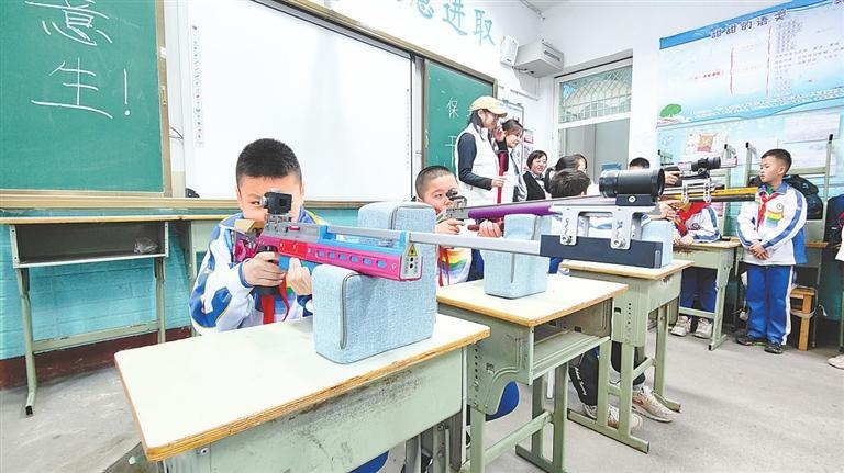“激光槍與以往的傳統(tǒng)氣槍相比,安全性、適配性更高,可以培養(yǎng)學(xué)生的沉著冷靜、協(xié)調(diào)平衡等多項素質(zhì)。射擊不僅是一項技能學(xué)習(xí),更是一種全面素質(zhì)的提升。它培養(yǎng)孩子的專注力和耐心。”該課程特聘老師石卓靈介紹,目前光電射擊課已面向全校普及,已有50人報名參加社團(tuán)。
