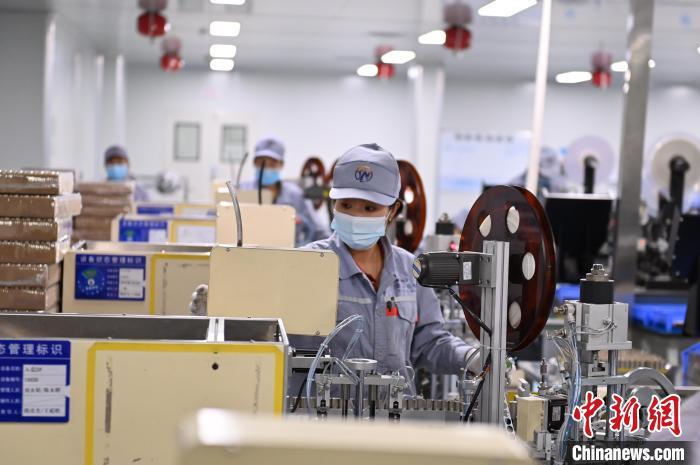 甘肅省金昌市,甘肅金拓鋰電新能源有限公司工作人員正在進行電池生產(chǎn)相關(guān)工作。(資料圖)李亞龍攝