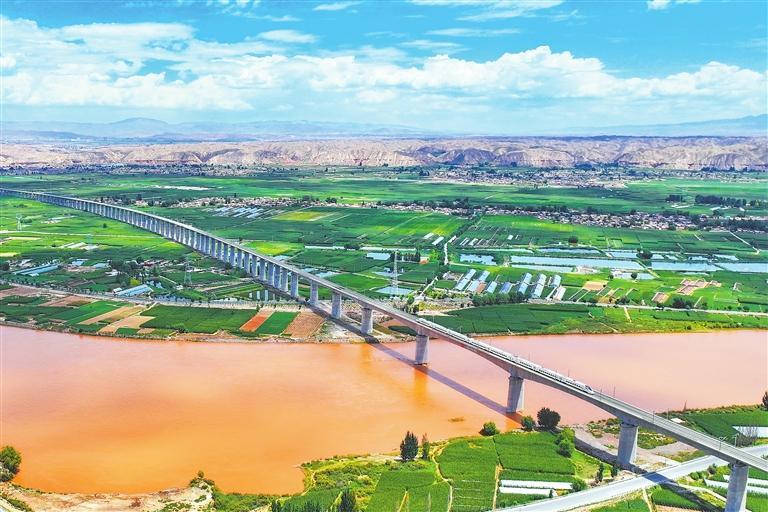 銀蘭高鐵靖遠(yuǎn)黃河特大橋。新甘肅·甘肅日報記者丁凱