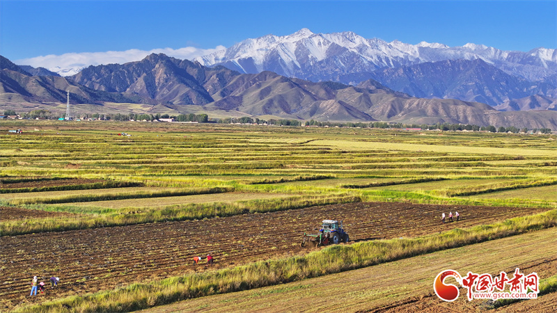 10月7日,位于祁連山腳下的張掖市民樂縣南豐鎮(zhèn)張連莊村的千畝黃芪種植基地,藥農(nóng)們忙著采收黃芪,田間地頭一派豐收的繁忙景象。