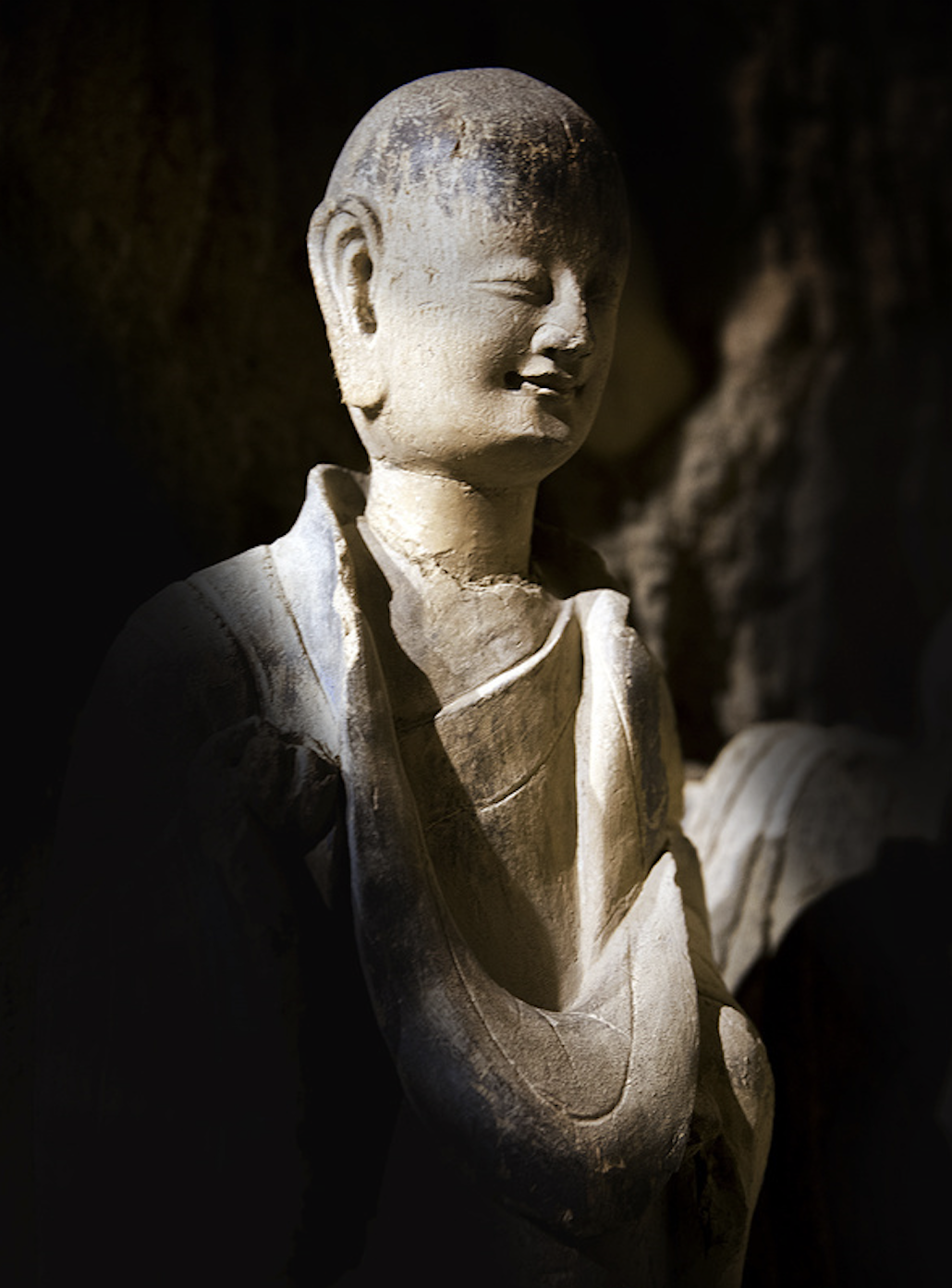 麥積山石窟始建于384-417年,現(xiàn)存有221座洞窟、10632身泥塑石雕、1300余平方米壁畫。麥積山石窟的獨(dú)特之處在于,雕塑的人物形象沖破了佛像造型的固有風(fēng)格,不再莊重嚴(yán)肅,更加貼近生活,充滿人間溫度。