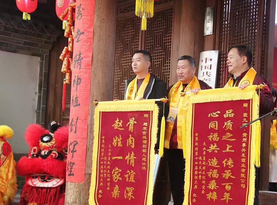 上午九點,趙氏天水堂內(nèi)旌旗招展、鼓樂同鳴。趙氏宗親代表隊及舞獅隊、鑼鼓隊、嗩吶隊、腰鼓隊等前往伏羲廟拜謁中華人文始祖伏羲。隨后,祭祖大典在古樸大方、莊嚴(yán)肅穆的趙氏天水堂正式拉開帷幕。