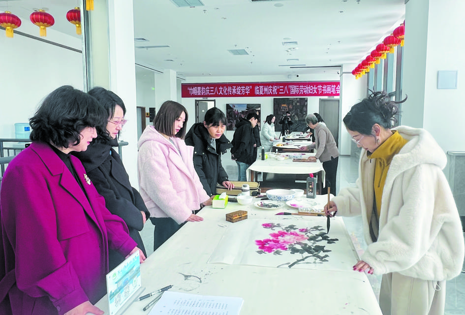 臨夏州舉辦迎“三八”主題書畫筆會