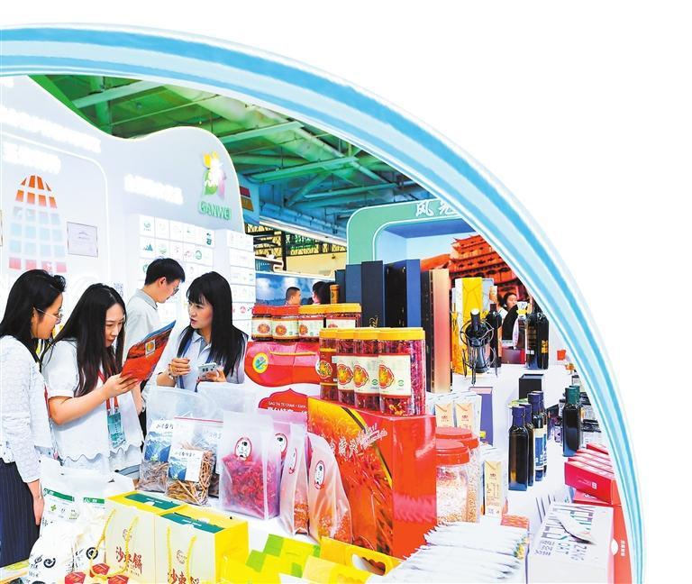 張掖館內(nèi),各類(lèi)特色農(nóng)產(chǎn)品受到人們的青睞。 新甘肅·甘肅日?qǐng)?bào)記者 馬伊星