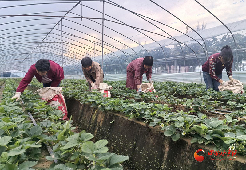 草莓種植讓群眾在家門口實現(xiàn)了務工增收 馮永利/攝
