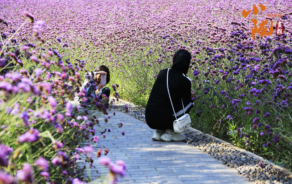 這個(gè)季節(jié),各種花卉依舊開放,尤其是粉黛亂子草更是以草為名,比花還美,默默延續(xù)著黃河花堤從春到秋的浪漫氣息。