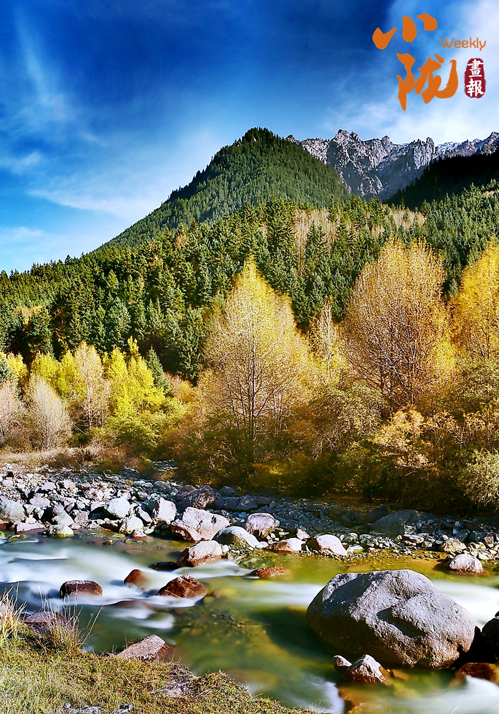祁連山在秋光下流淌出迷人的色彩,對比感強烈的彩林與河流、農(nóng)田、山峰相映成趣,美如畫卷。這里的秋日,陽光溫馨恬靜,微風和煦輕柔,藍天白云飄逸,山野浪漫靜美。