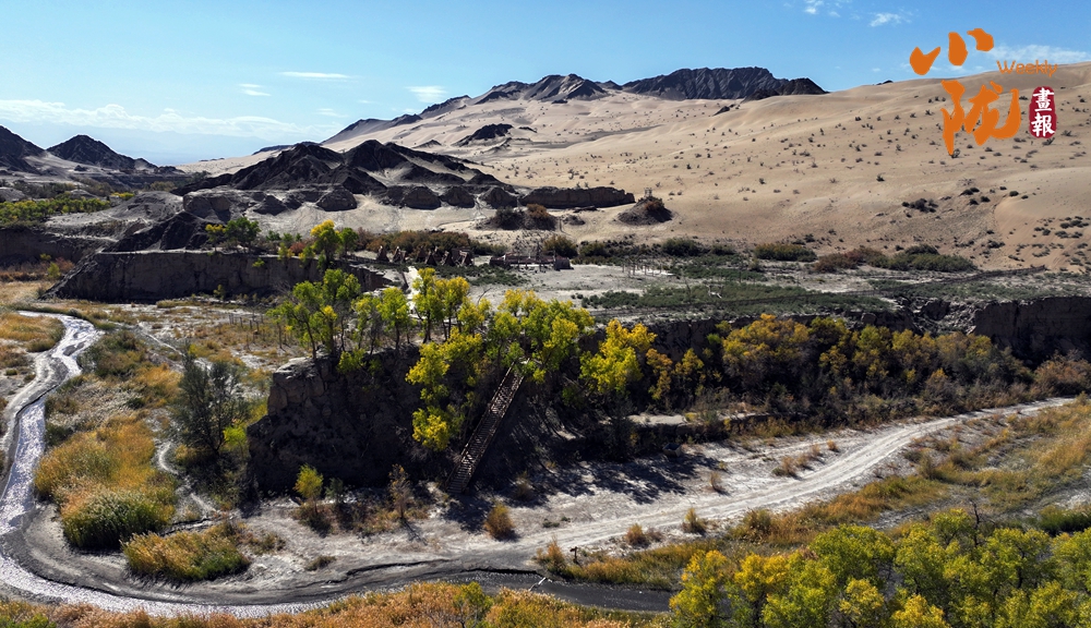 這里山勢(shì)奇特,因溝深線長,猶如峽谷,溝邊自生許多胡楊,被稱為“胡楊峽”。你看,溝邊沙山林立,千年胡楊挺拔,溝內(nèi)溪水清澈纏綿,天然的紅柳、蘆葦、梭梭、沙棗樹等植被錯(cuò)落有致,共同繪就了一幅秋日畫卷。