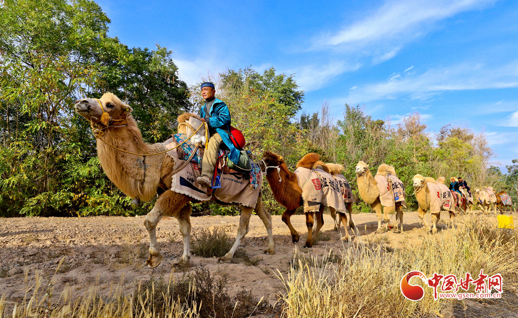 10月9日,一隊由33峰駱駝組成的駝隊行進(jìn)在高臺縣境內(nèi)的絲綢之路大型漢唐古文化遺址——駱駝城遺址內(nèi),千年駱駝城又響起陣陣駝鈴聲。