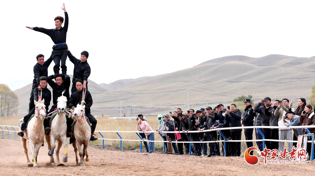 10月14日,山丹縣的一場賽馬會上,騎手們正策馬揚(yáng)鞭,為游客展示多項(xiàng)馬術(shù)項(xiàng)目。山丹縣毗鄰祁連山自然保護(hù)區(qū)和山丹軍馬場,坐擁優(yōu)質(zhì)草場資源,養(yǎng)馬歷史逾兩千年,馬文化底蘊(yùn)深厚,產(chǎn)業(yè)基礎(chǔ)扎實(shí)。近年來,當(dāng)?shù)貒@馬文化主題,建設(shè)了賽馬場、觀光馬道、育馬基地等設(shè)施,致力于為游客與馬術(shù)愛好者打造一個獨(dú)具特色的馬文化體驗(yàn)地。