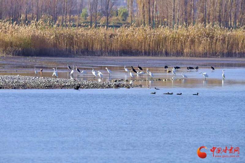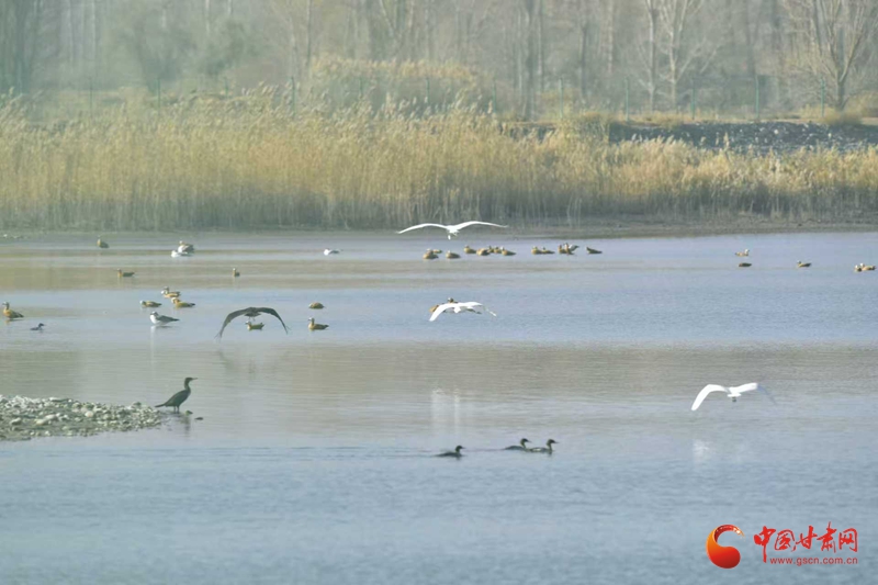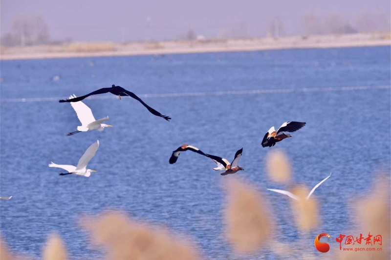 11月10日,初冬寒意漸濃,臨澤流沙河景區(qū)與雙泉湖水庫蘆葦叢間,響起遷徙鳥類的“集結(jié)號(hào)”。潔白的白鸛舒展雙翼、翩躚飛舞,成群麻鴨、鸕鶿緊隨而至,齊聚水域與葦蕩之間,為初冬景致添上靈動(dòng)一筆,引得市民游客駐足抓拍。