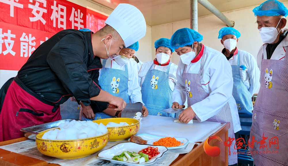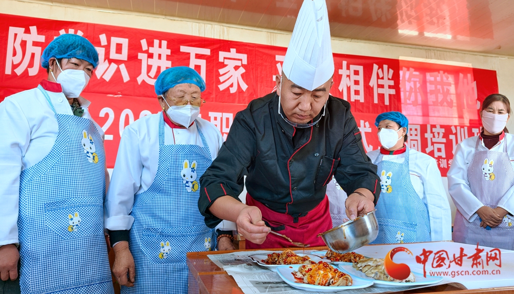 11月4日,金塔縣古城鄉(xiāng)頭號村,村民在培訓老師指導下正在學習廚藝。