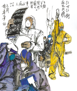 中國(guó)畫(huà)《仁心仁術(shù),救死扶傷》。
