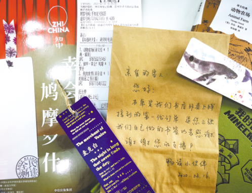 書(shū)店人為外賣訂單寫(xiě)下溫暖留言。美團(tuán) 供圖