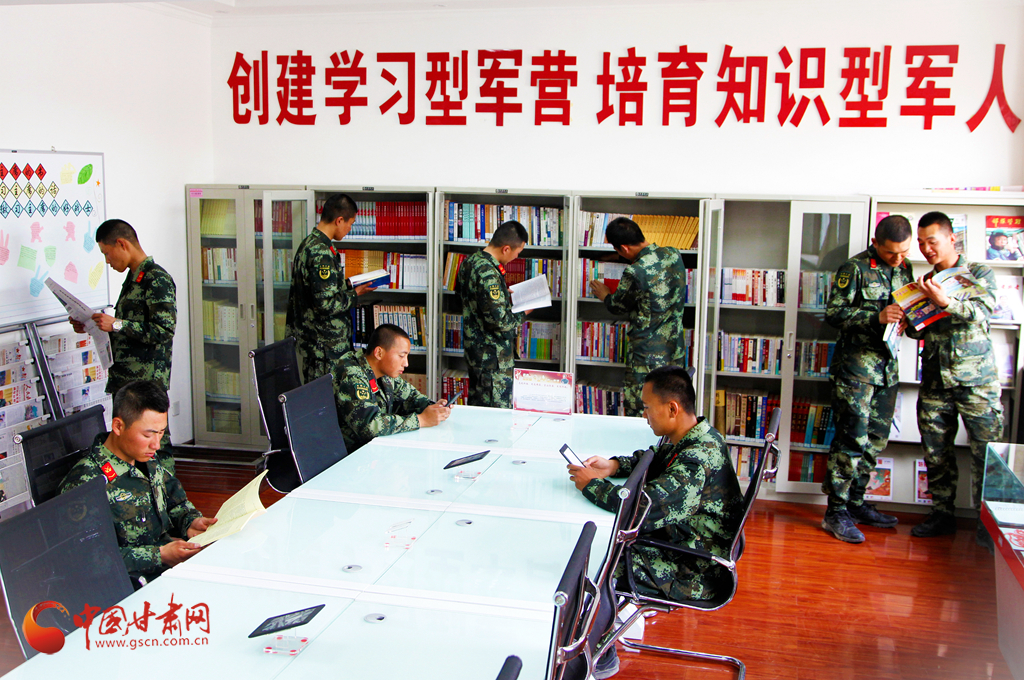 嘉峪關(guān)支隊(duì)官兵正在讀書學(xué)習(xí)