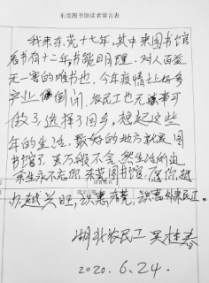 吳桂春給東莞圖書館的留言。