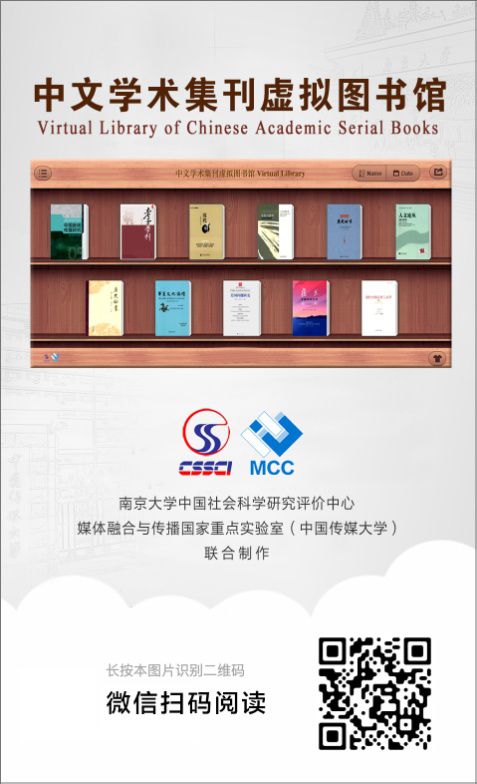 近年來,南京大學中國社會科學研究評價中心積極加強與國內媒體融合教學科研機構的合作,力求通過媒體融合技術以更廣的傳播范圍、更及時的傳播時效和更靈活的互動交流方式傳播高質量學術內容,貼近學界,服務學界,彰顯作為學術發(fā)展“記錄者”的責任與擔當。中國社會科學研究評價中心負責人認為,“中文學術集刊虛擬圖書館”是順應學術傳播方式新變化、媒體融合發(fā)展新趨勢作出的探索性嘗試,是CSSCI奮進新時代、實現(xiàn)高質量發(fā)展、服務學術研究的創(chuàng)新舉措。相信只要有關各方協(xié)力同行,一定能構建成一個包括作者、編者、讀者和出版機構在內的充滿活力的數(shù)字生態(tài)共同體。(付文)