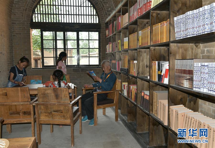 老苗書館就是在其中一處窯洞上修建而成。“這個(gè)院子共有8口窯洞組成,一百多年前由一戶苗姓人家修建,所以取名老苗書館。”51歲的苗樹生是書館的第一任館長(zhǎng),也是建設(shè)者之一。“我們是24小時(shí)開放,村民可以把書拿回家,還可以把家里的書拿來(lái)?yè)Q著看,整個(gè)書館藏書5萬(wàn)多冊(cè),很多都是黨員干部和志愿者捐來(lái)的。”苗樹生說(shuō)。