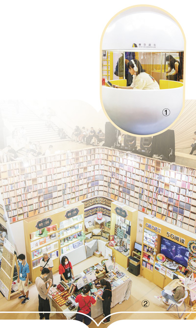 圖①:讀者在上海書展現(xiàn)場體驗“未來自習(xí)室”。