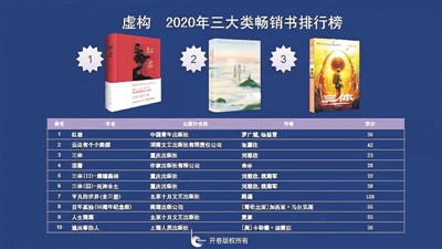 同時,2020年整體市場缺乏亮眼的暢銷書,銷量百萬以上的圖書品種由2019年的49種下降至2020年的24種,榜單仍以經(jīng)典常銷圖書和暢銷系列為主?!都t巖》成為虛構(gòu)類第1名,同時也是總榜榜首。《云邊有個小賣部》和《三體》分別位列第2名和第3名。非常眼熟是不是?在非虛構(gòu)圖書中,引進(jìn)的《你當(dāng)像鳥飛往你的山》排名第一。少兒類第1名《夏洛的網(wǎng)》是2014年8月上市的,截至目前該書上榜已有133次。少兒榜和虛構(gòu)榜沒有新書進(jìn)入2020年榜單前10,非虛構(gòu)只有《國家安全知識百問》1本進(jìn)入。就是說,整個零售市場的大半江山都依賴于老書。