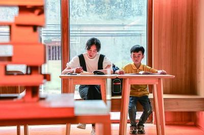 5月8日,一對母子在福建省晉江市東石鎮(zhèn)“母親的房子”圖書館內(nèi)閱讀。今年5月,福建省晉江市東石鎮(zhèn)“母親的房子”圖書館正式對外開放。“母親的房子”是福建省晉江東石籍作家蔡崇達《皮囊》書里所描述的一座房子。現(xiàn)在,這座房子被他改造成了一座現(xiàn)代風格與閩南特色相融合的公益圖書館,成為當?shù)毓参幕囊徊糠?。新華社發(fā)