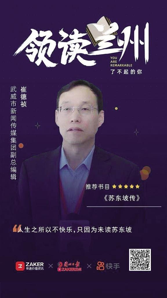 “領(lǐng)讀蘭州·了不起的你”大使薦讀進行時……今天的薦讀大使是武威市新聞傳媒集團副總編輯崔德禎,他最近正在讀的書是林語堂先生的《蘇東坡傳》,他向大家推薦這本書,希望跟大家一起閱讀!