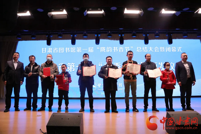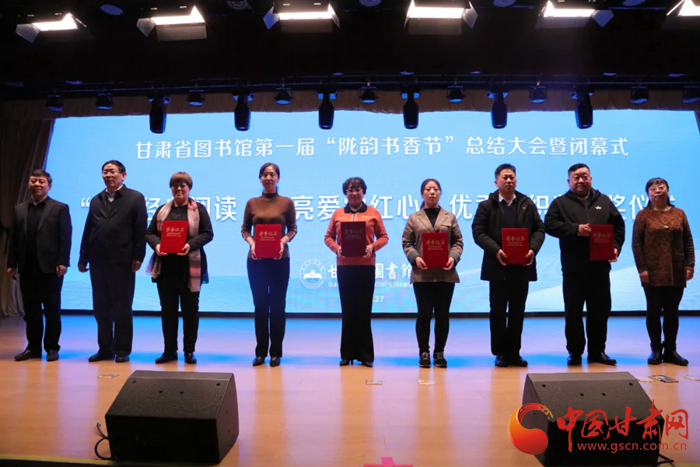 中國(guó)甘肅網(wǎng)12月28日訊(本網(wǎng)記者 張?zhí)m琴 通訊員 吳鵬)12月27日,歷時(shí)8個(gè)月的甘肅省圖書(shū)館第一屆隴韻書(shū)香節(jié)圓滿(mǎn)落幕。閉幕儀式上播放了第一屆“隴韻書(shū)香節(jié)”活動(dòng)總結(jié)短片和書(shū)香家庭宣傳短片,公布了“隴韻書(shū)香節(jié)”形象標(biāo)識(shí)(LOGO)方案,并為“甘肅省第一屆書(shū)香家庭”獲得者、“紅色經(jīng)典閱讀 點(diǎn)亮愛(ài)黨紅心”活動(dòng)獲獎(jiǎng)?wù)哳C獎(jiǎng)。